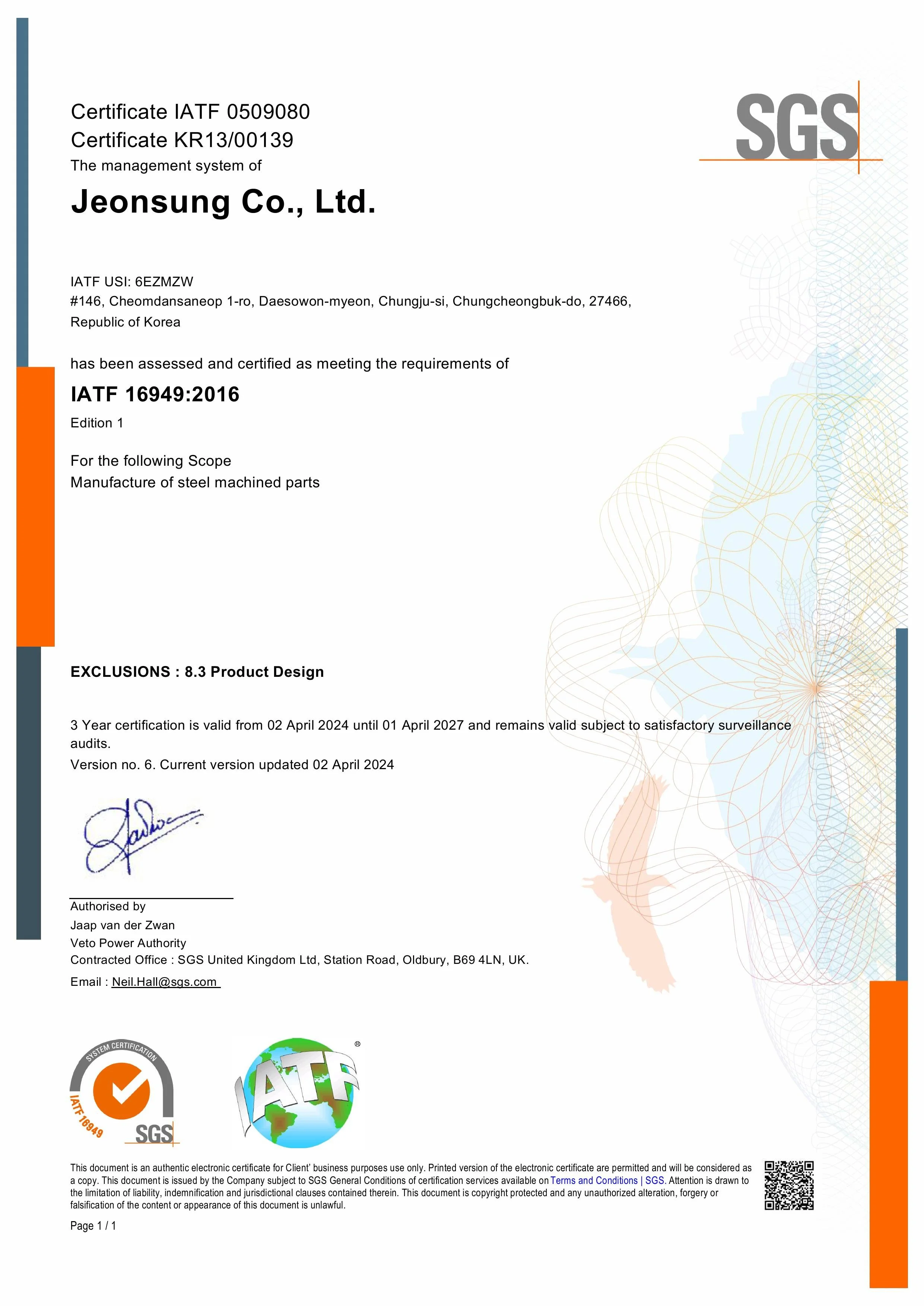 Certificate of deposit of technical data (shaft for electric motors for vehicles and manufacturing method)