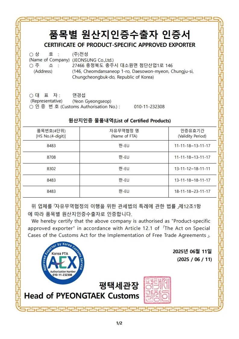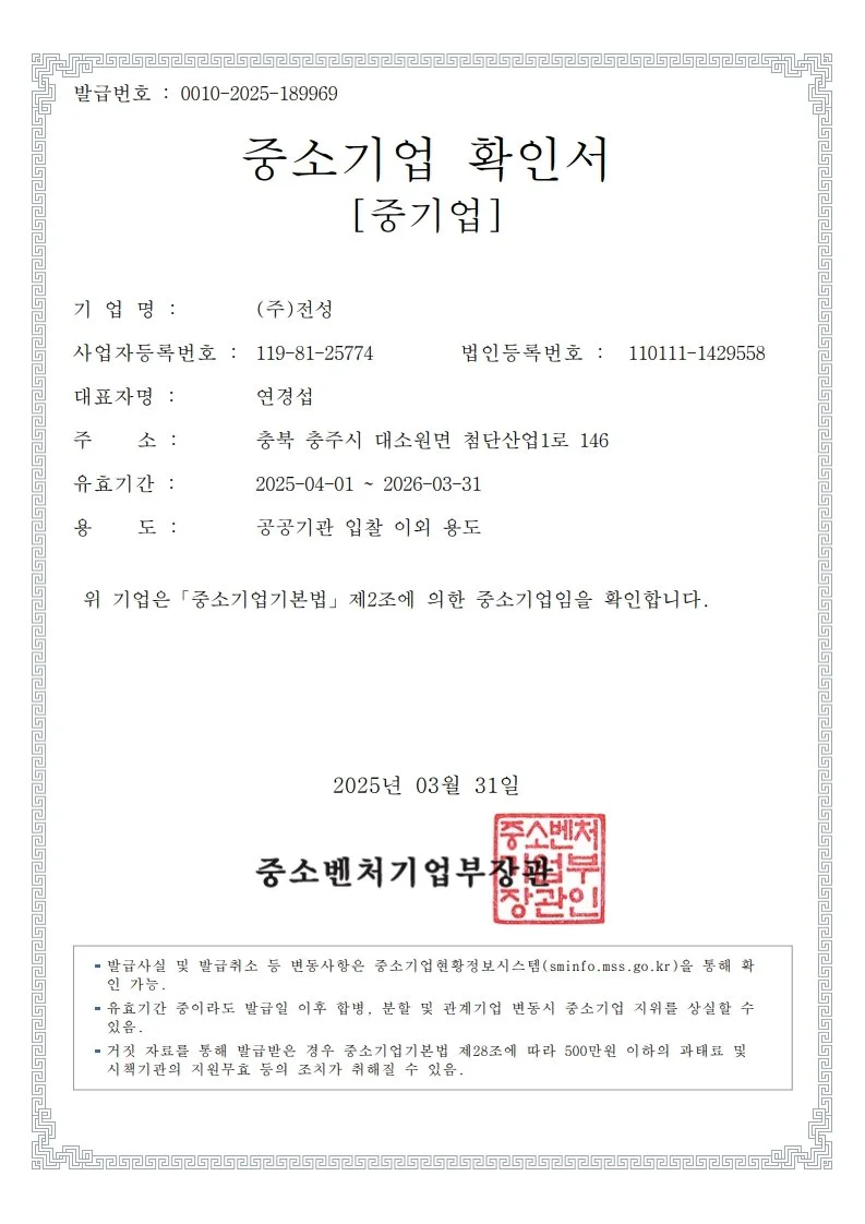 materialsㆍcomponentsㆍEquipment Professional Enterprise Confirmation Letter